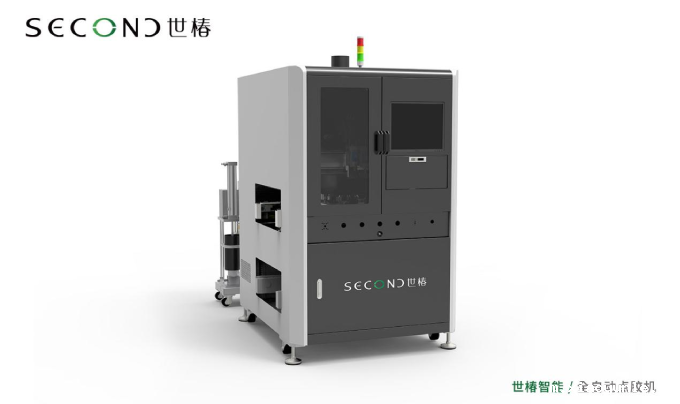 全自动点胶机,具有如下技术特点:一是设备兼容性广,可扩展三轴、五轴点胶,可兼容多种胶水包装,可适配多种类点胶阀门和供胶方式;二是封闭式外壳设计,便于操作的同时,提高了点胶环境的清洁性;三是通过CCD自动定位,具有快速、精准和自动化等优势;四是供胶/控胶系统采用压盘泵+撞针阀设计,具有更大的供胶压力,出胶效率更高;五是编程界面简单友好,常用的图形(圆、椭圆、矩形等)无需教导,可直接输入参数调用。