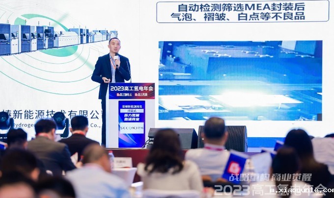 本次峰会得到了众多氢能与燃料电池产业链优秀企业的倾情支持,他们通过多元化的形式展示各自在技术变革、产能布局、产品创新、市场开拓等方面的最新进展。世椿新能源销售总监许昌在《乘氢能源东风,装备顺势而为》主题演讲中介绍,在氢能源东风的吹拂下,世椿新能源顺势而为,前瞻性把握行业发展方向,提前布局,研发出应用于氢能及燃料电池行业的高速度、高精度、高可靠性智能制造装备:双极板自动封装线、膜电极自动封装线、自动/半自动装堆机、双极板/膜电极气密测试线、双极板/膜电极瑕疵检测线、电堆/系统组装线、PEM电解槽装堆线等,以及核心工艺解决能力:膜电极封装工艺解决能力、双极板封装工艺解决能力、电堆/系统组装工艺解决能力、电解槽生产工艺解决能力等,为国内外近100家燃料电池企业提供项目生产设备,大大提高了生产效率和自动化生产水平,推动氢能产业的高质量和可持续发展。