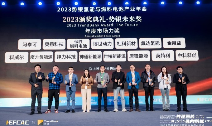 12月21日晚上,“2023势银未来奖颁奖晚宴”隆重举行,众多业内人士共同见证了这一盛况。组委会专家从产能、出货量、应用示范类别数量、头部客户进入数量等多个维度进行考量、评选,世椿新能源凭借在氢能及燃料电池电堆系统、膜电极、双极板、PEM制氢等应用领域内的开拓成果及技术实力,获得行业权威认可,成功获评2023势银未来奖“年度市场力奖”和“氢能与燃料电池产业50强”两项殊荣,世椿新能源销售总监许昌上台领取奖项。